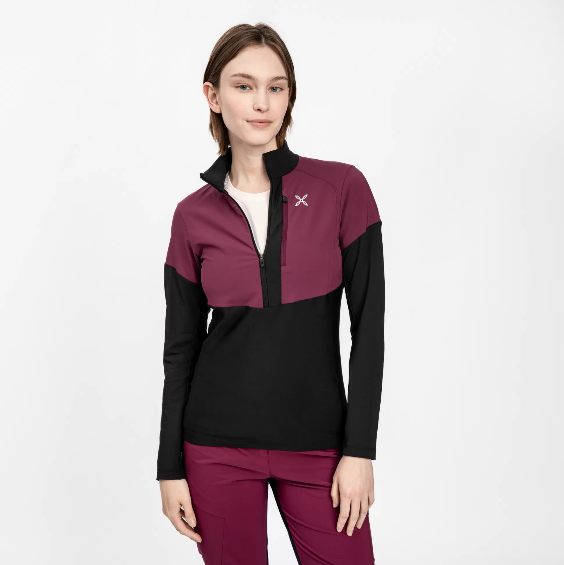 Maglia donna Tessuto pile poliestere bi-stretch ad elevata protezione dai raggi UV Contrasto in tessuto nylon DWR stret…