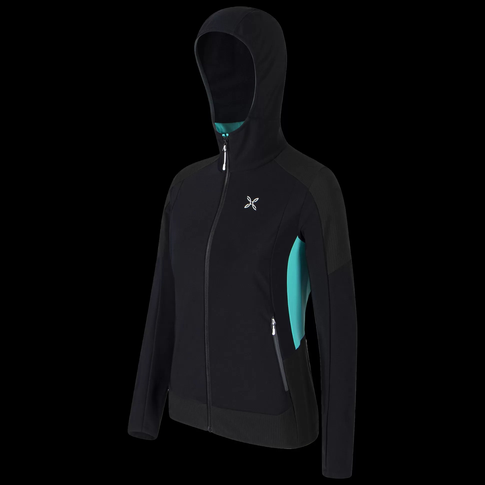 Maglia aperta donna con cappuccio Tessuto jersey stretch DWR garzato sul rovescio, assicura comfort termico, traspirant…