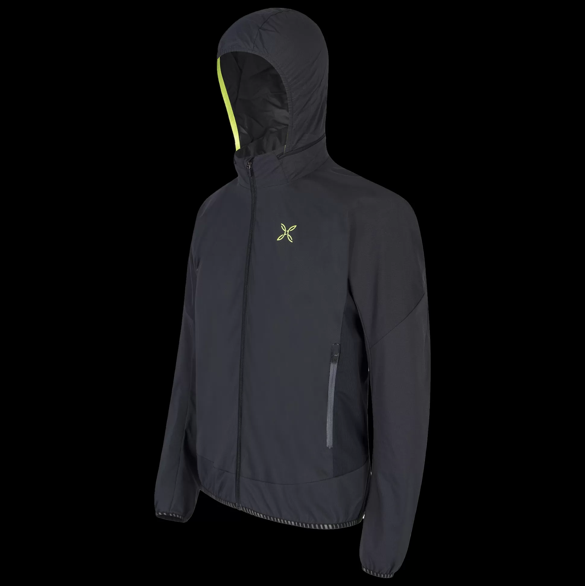 Giacca uomo con cappuccio Tessuto nylon DWR Foderato in tessuto rete Centro davanti con zip, tasche mani con zip Collo …