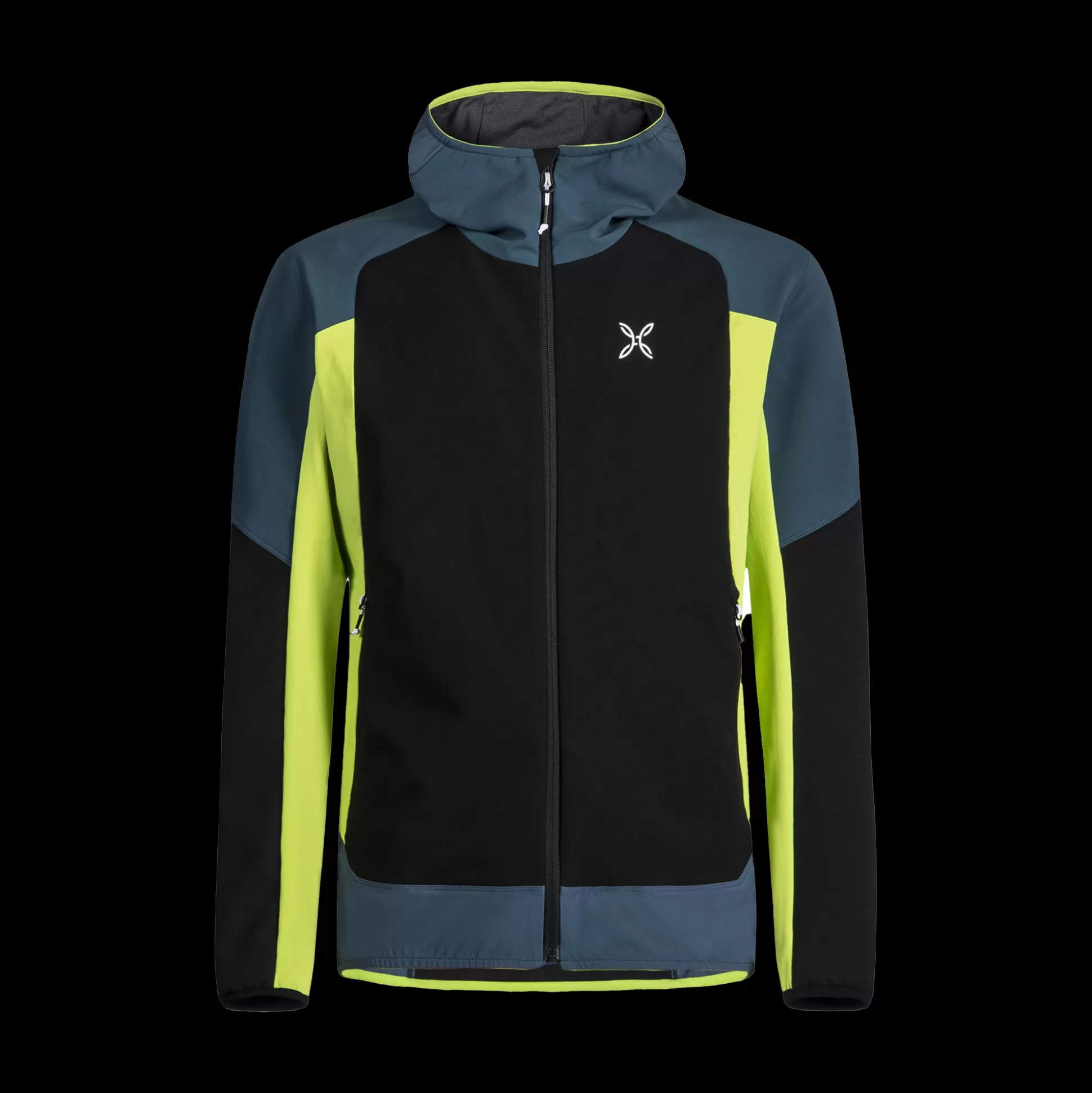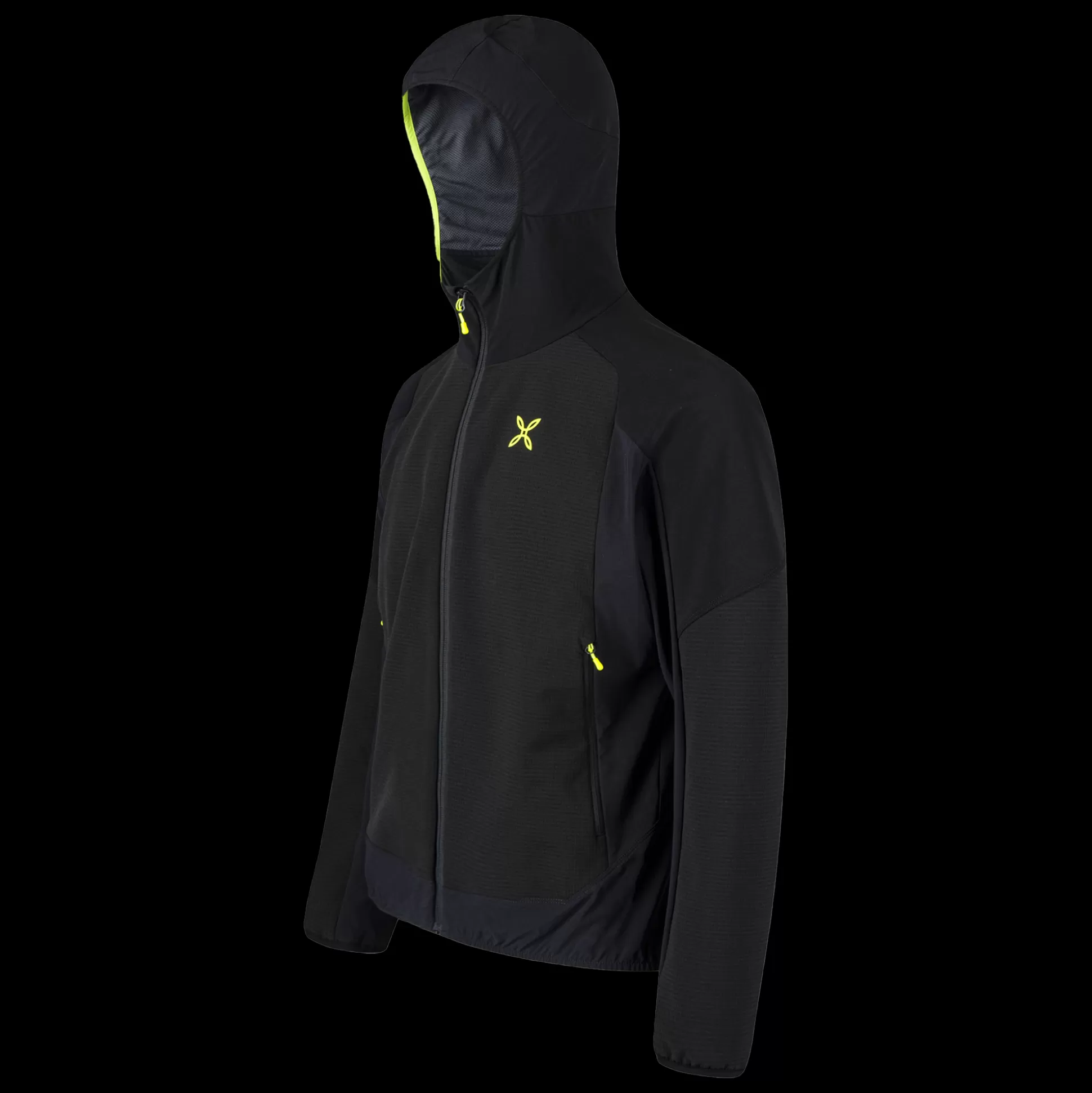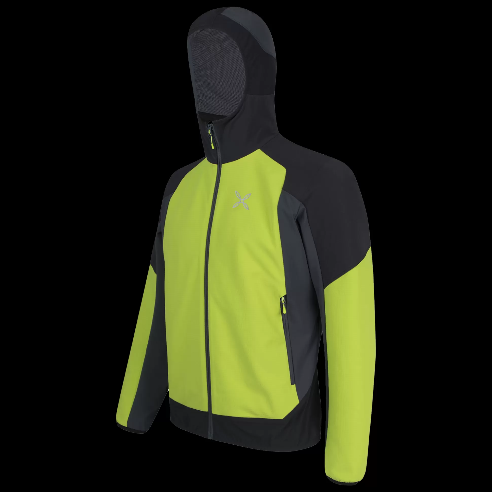 Giacca uomo con cappuccio Tessuto poliestere stretch DWR con costruzione double-weave e softshell Contrasto in tessuto …