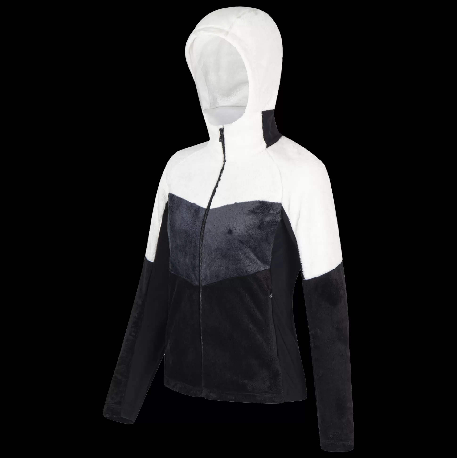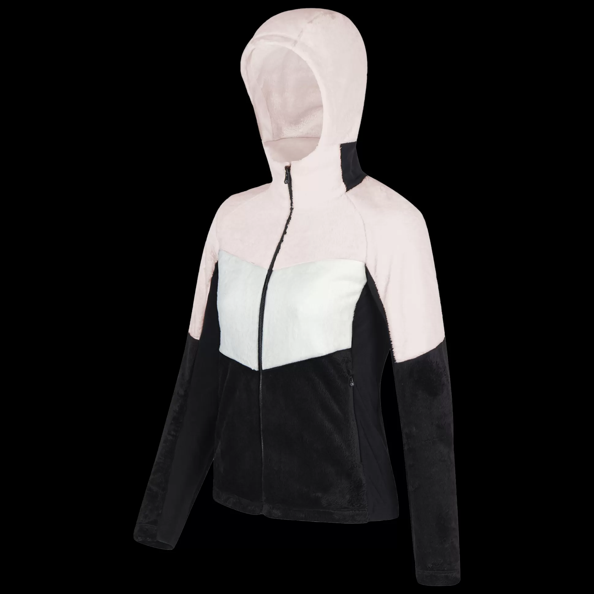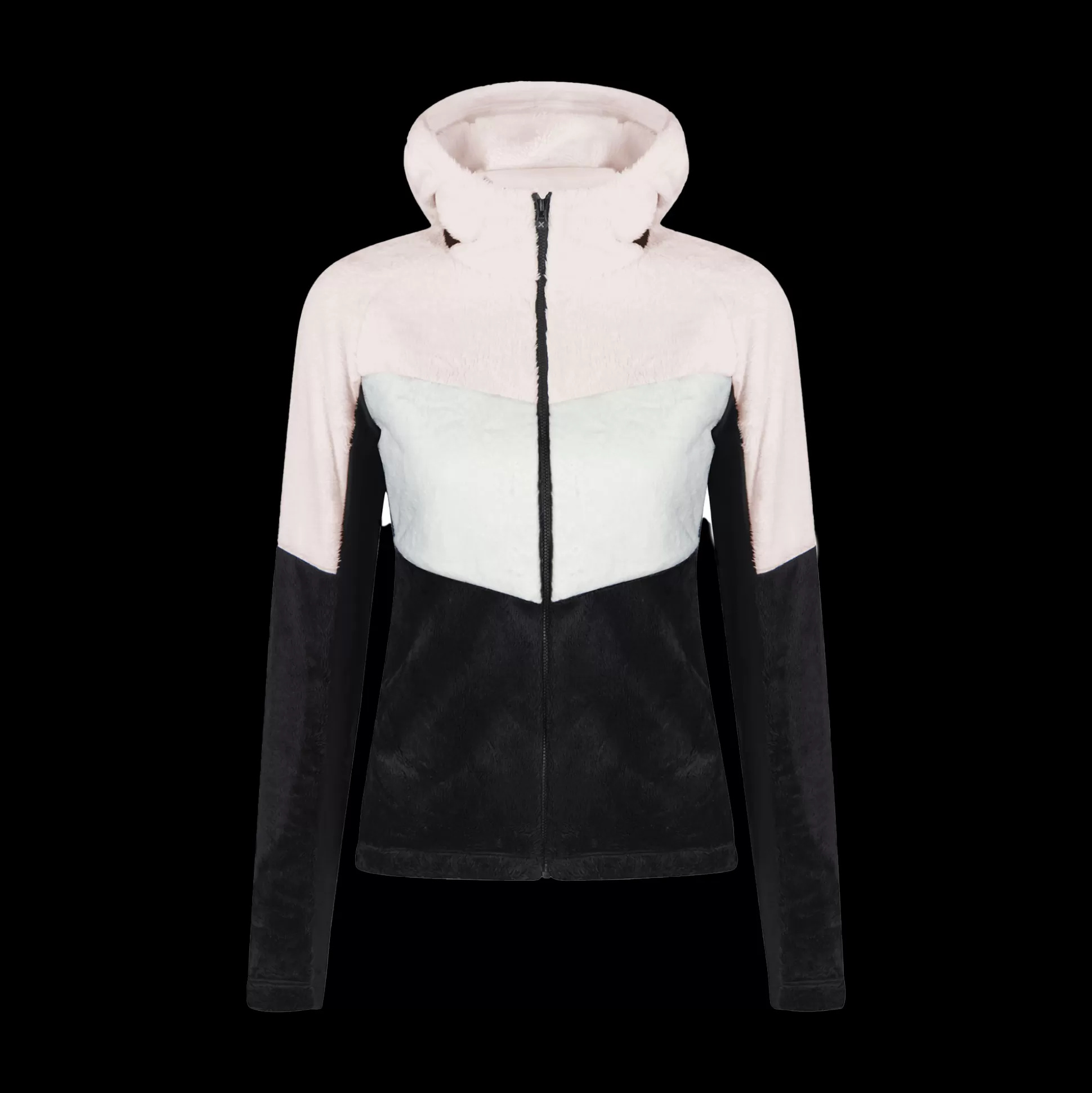 Giacca donna con cappuccio Tessuto double pile poliestere termico Contrasto in tessuto jersey Parzialmente foderato in …