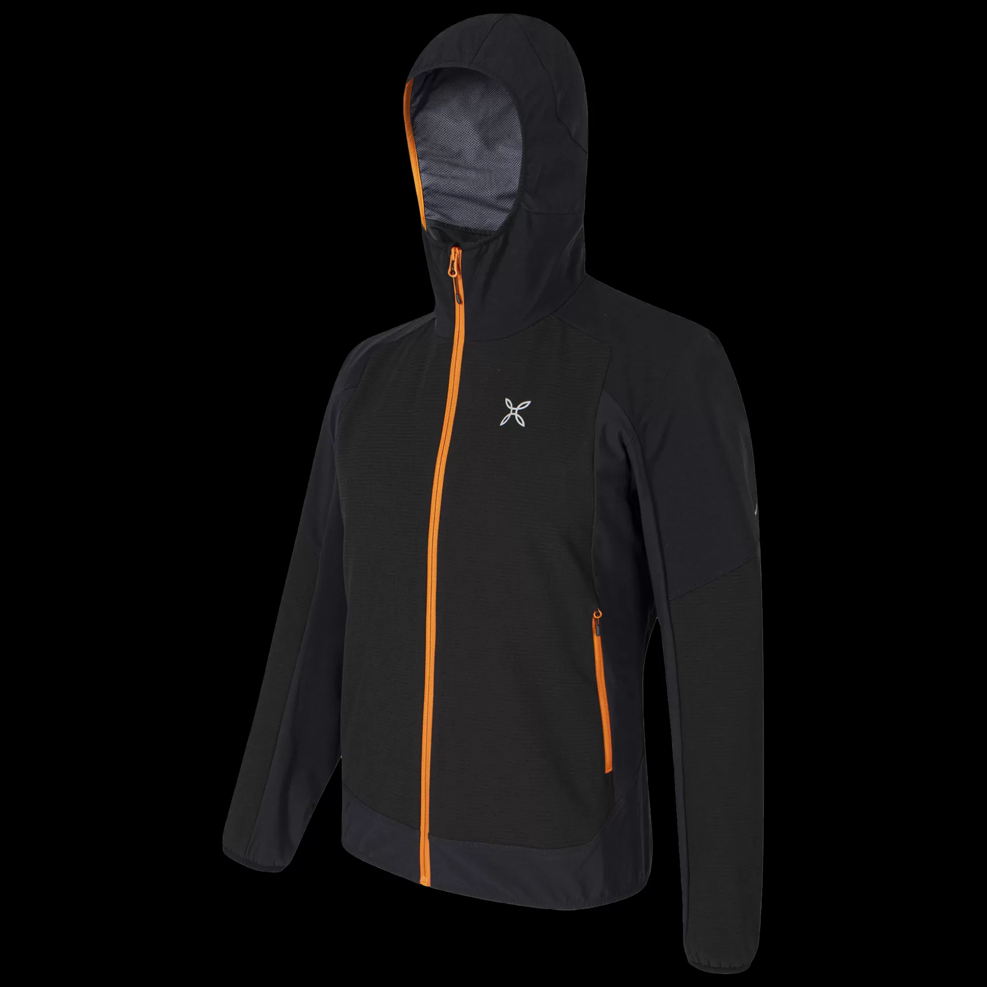 Giacca uomo con cappuccio Tessuto poliestere stretch DWR con costruzione double-weave e softshell Contrasto in tessuto …