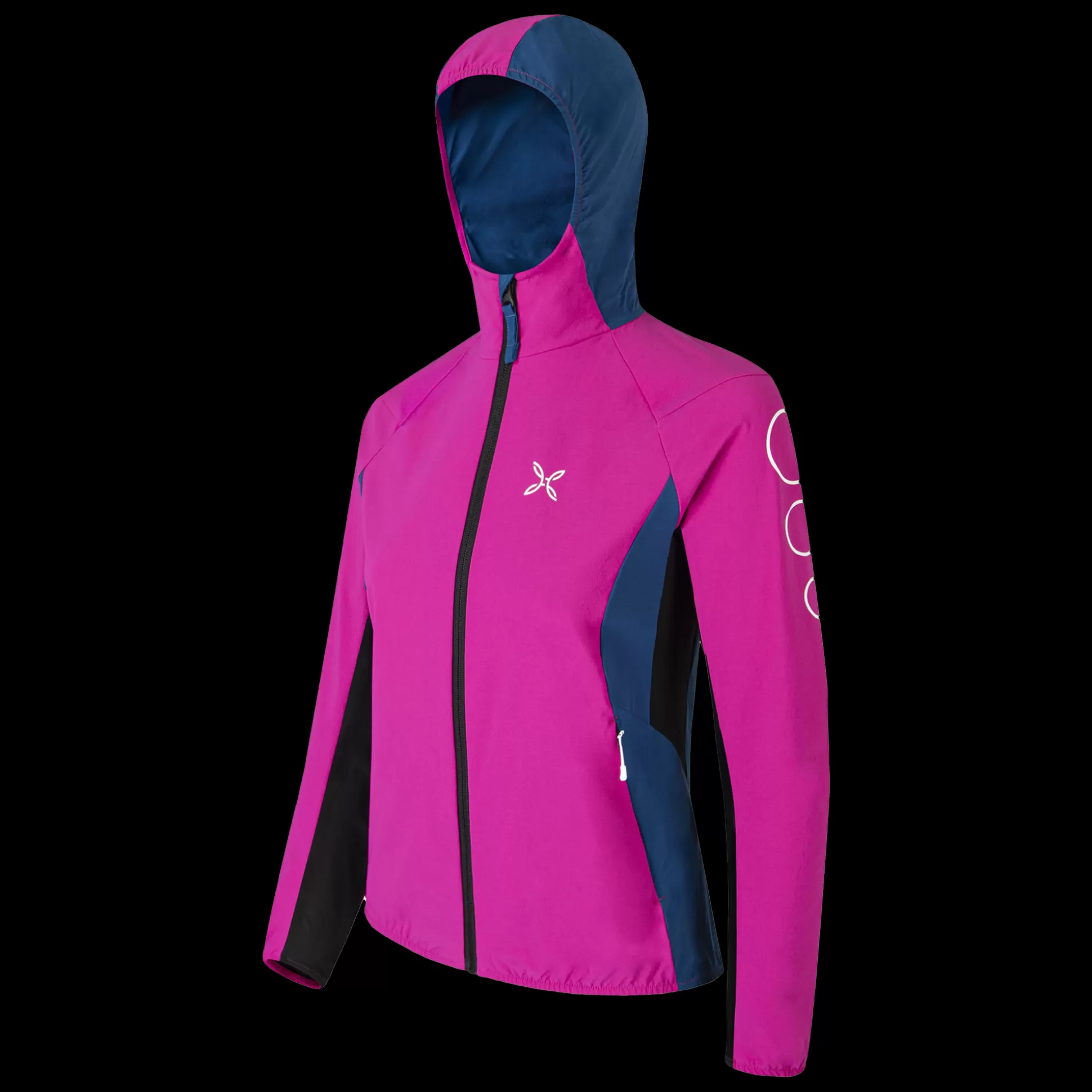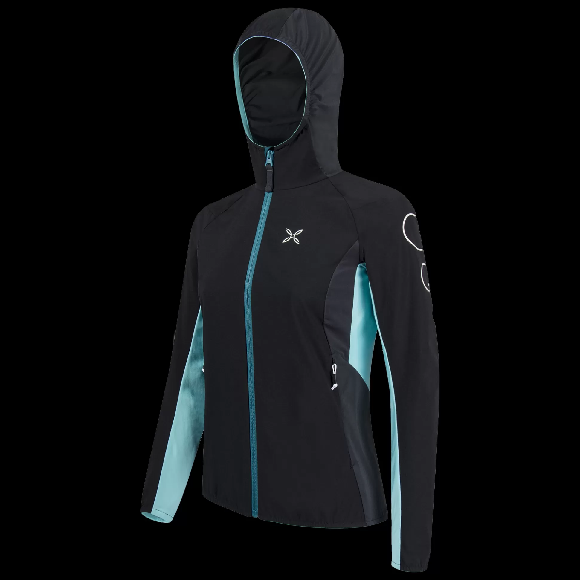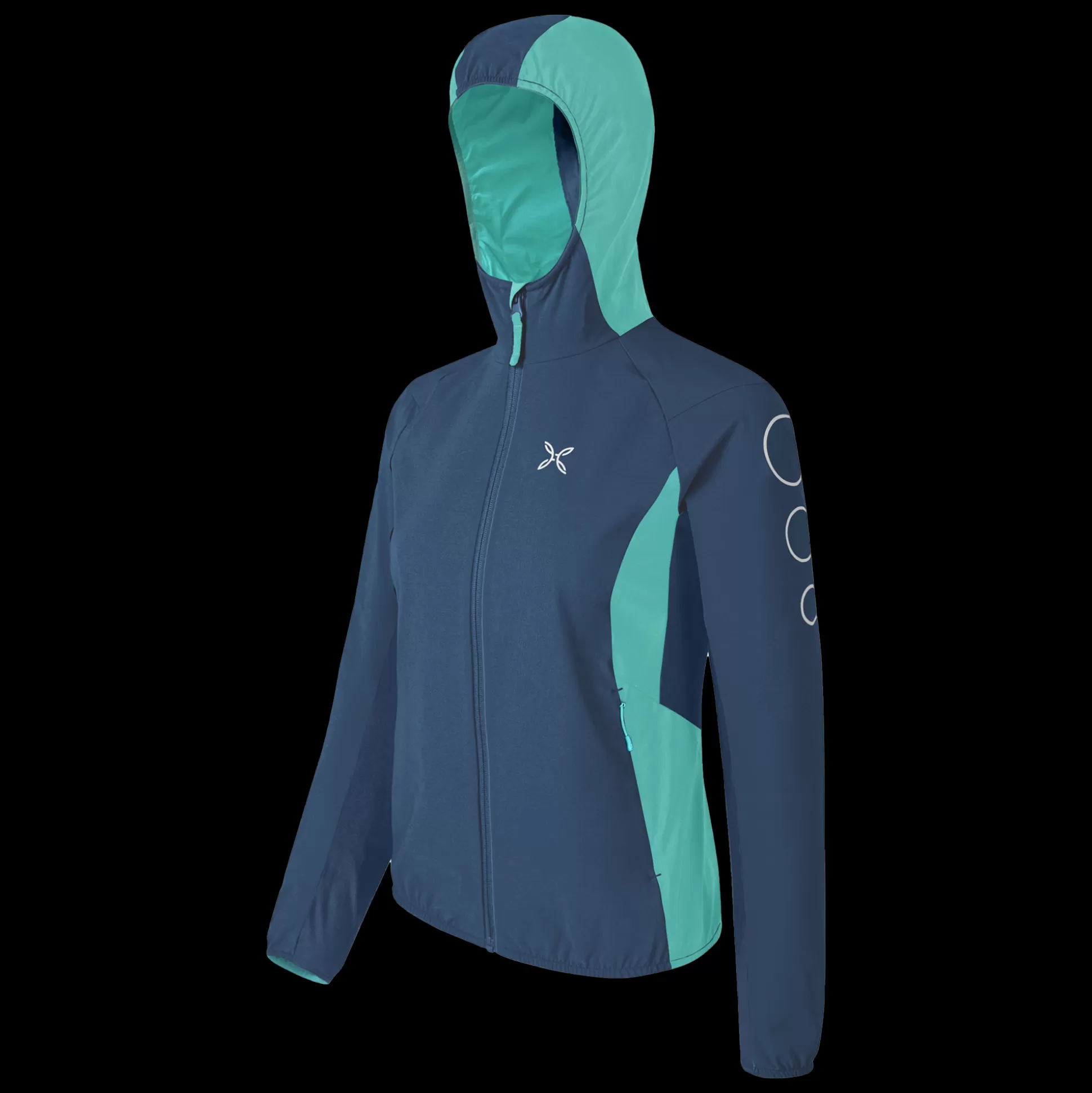 Giacca donna con cappuccio Tessuto nylon DWR 4-way-stretch Contrasto in tessuto jersey Parzialmente foderato in tessuto…