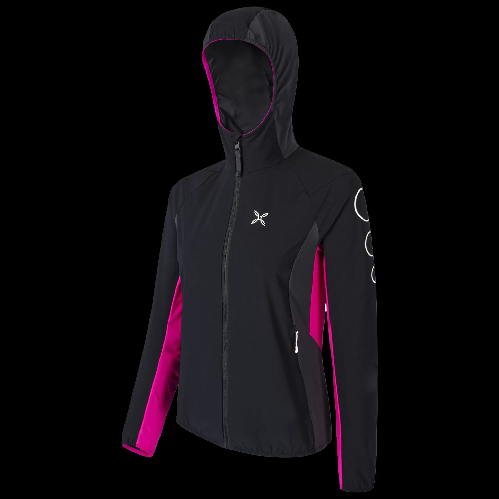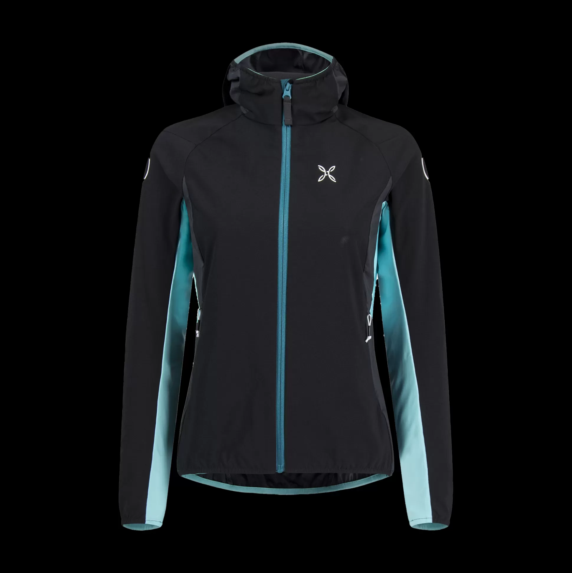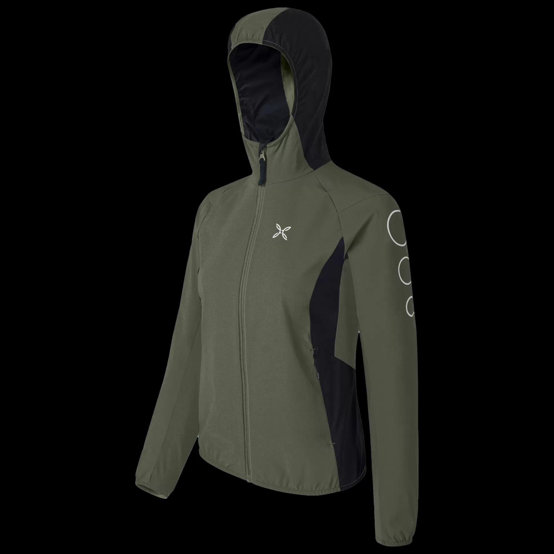 Giacca donna con cappuccio Tessuto nylon DWR 4-way-stretch Contrasto in tessuto jersey Parzialmente foderato in tessuto…