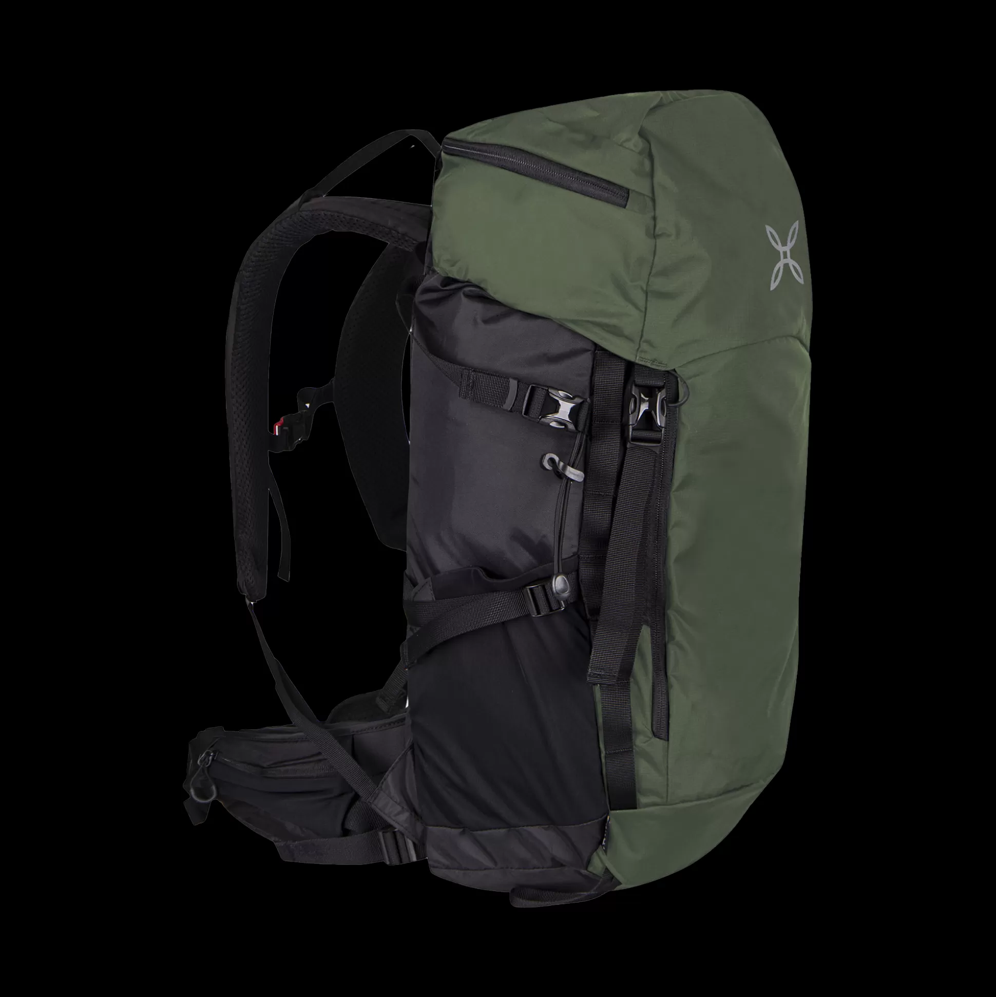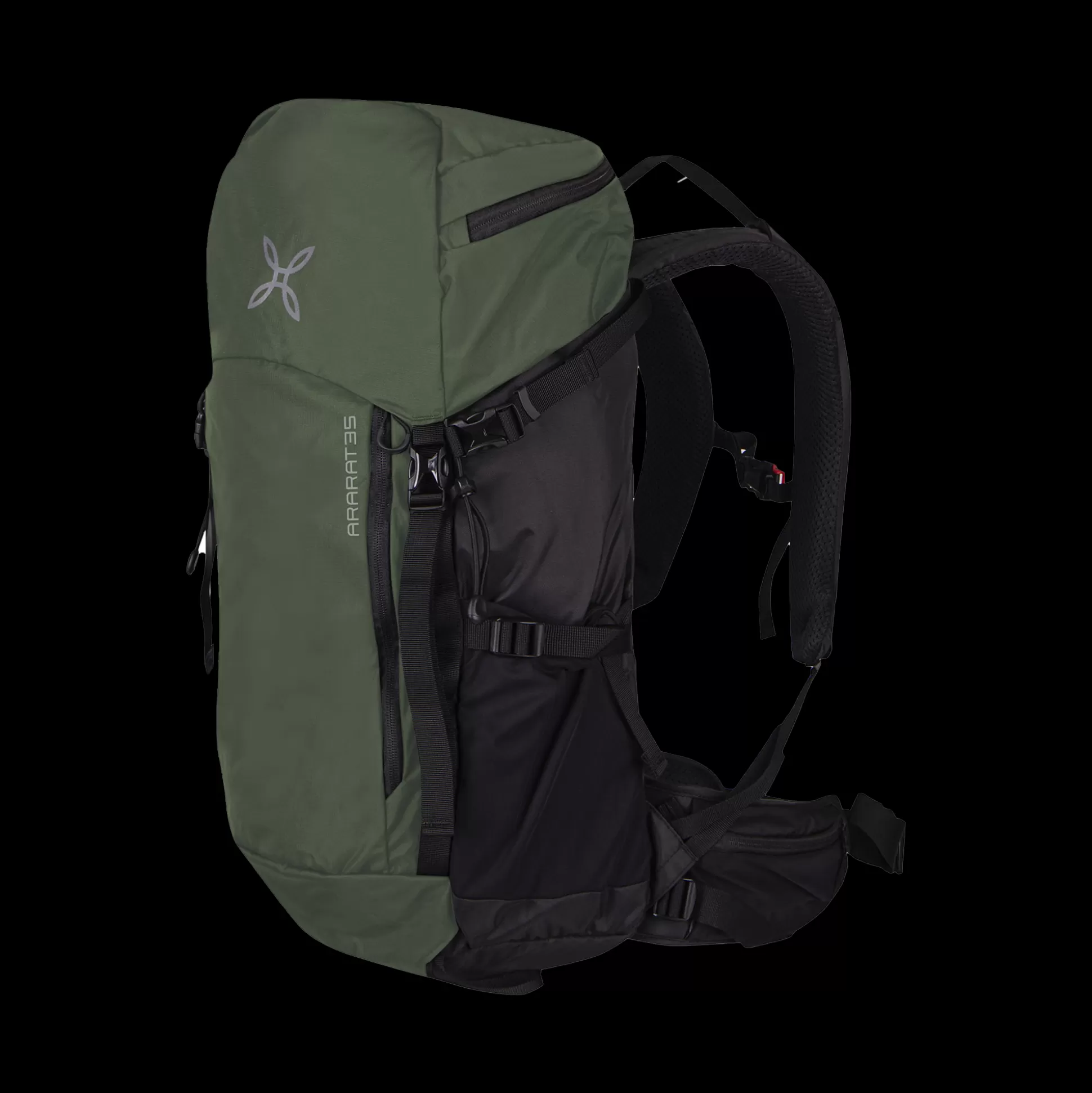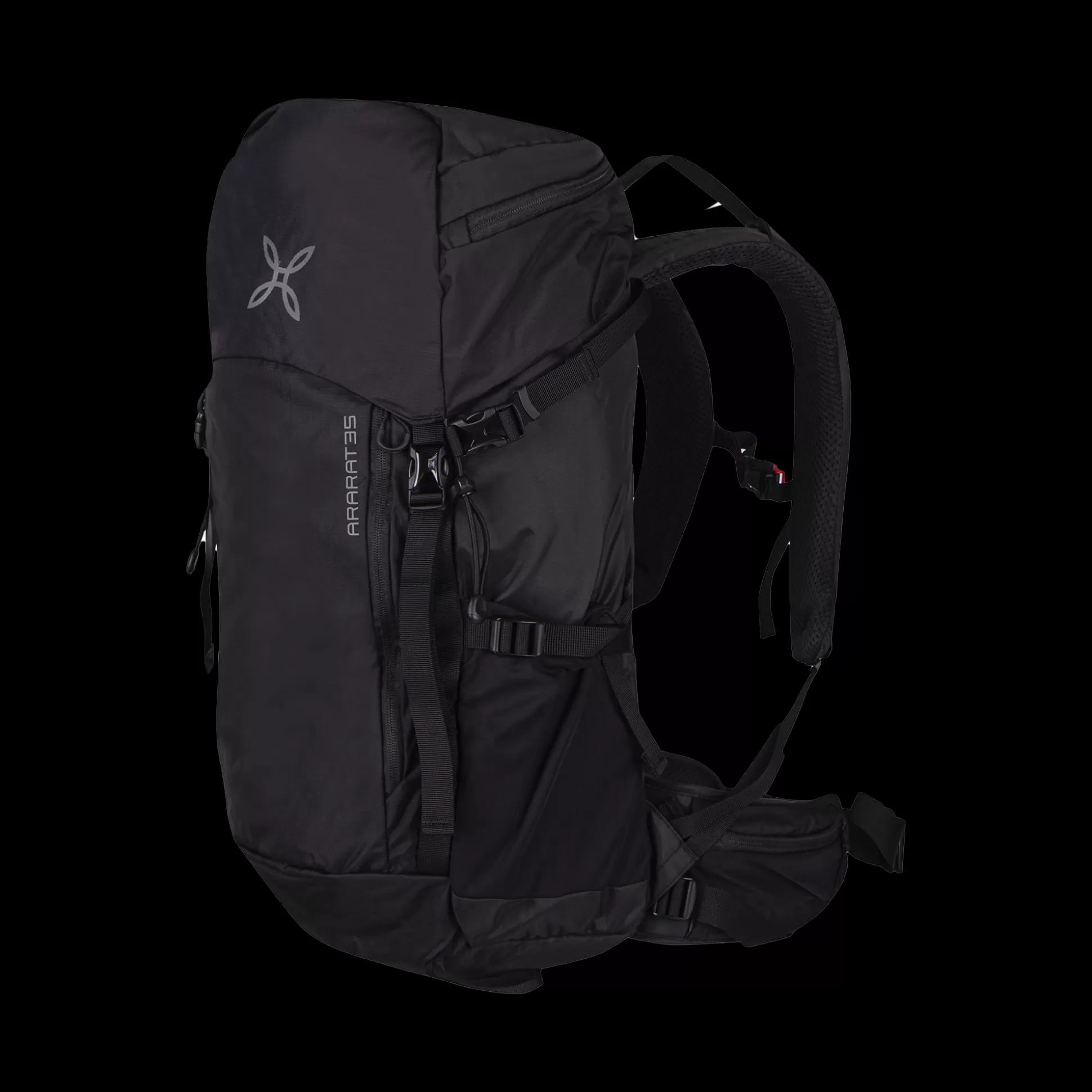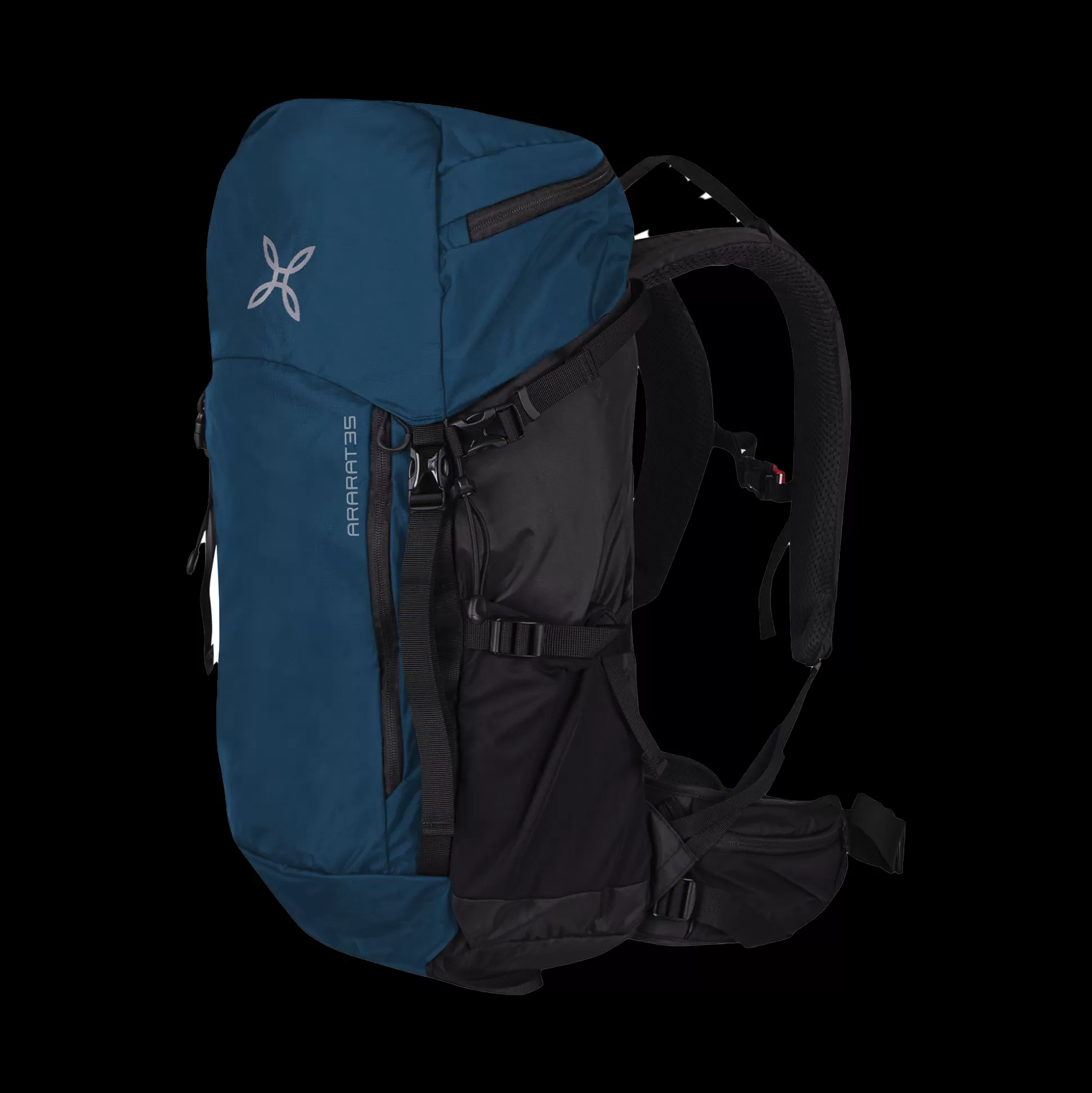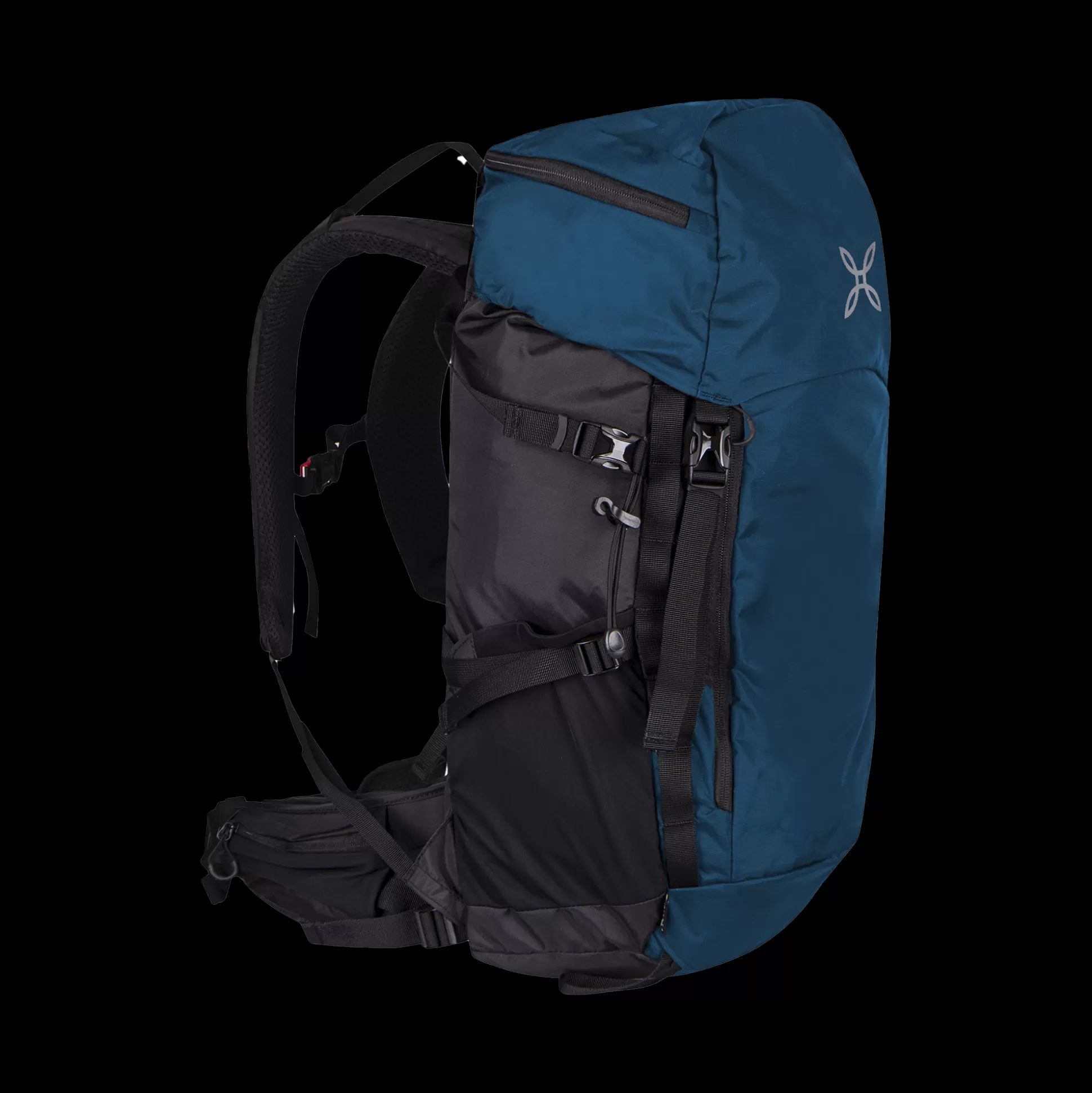 Zaino 35L Tessuto nylon Cordura® Due tasche nella cintura con zip Due tasche laterali in rete Tasca sopra con zip Tasc…