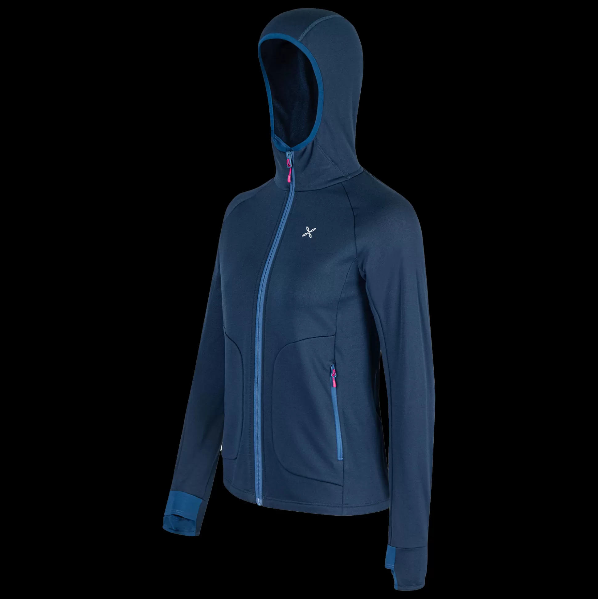Maglia aperta donna con cappuccio Tessuto pile 4-way stretch misto poliestere e lana Merino garzata a rovescio Centro d…