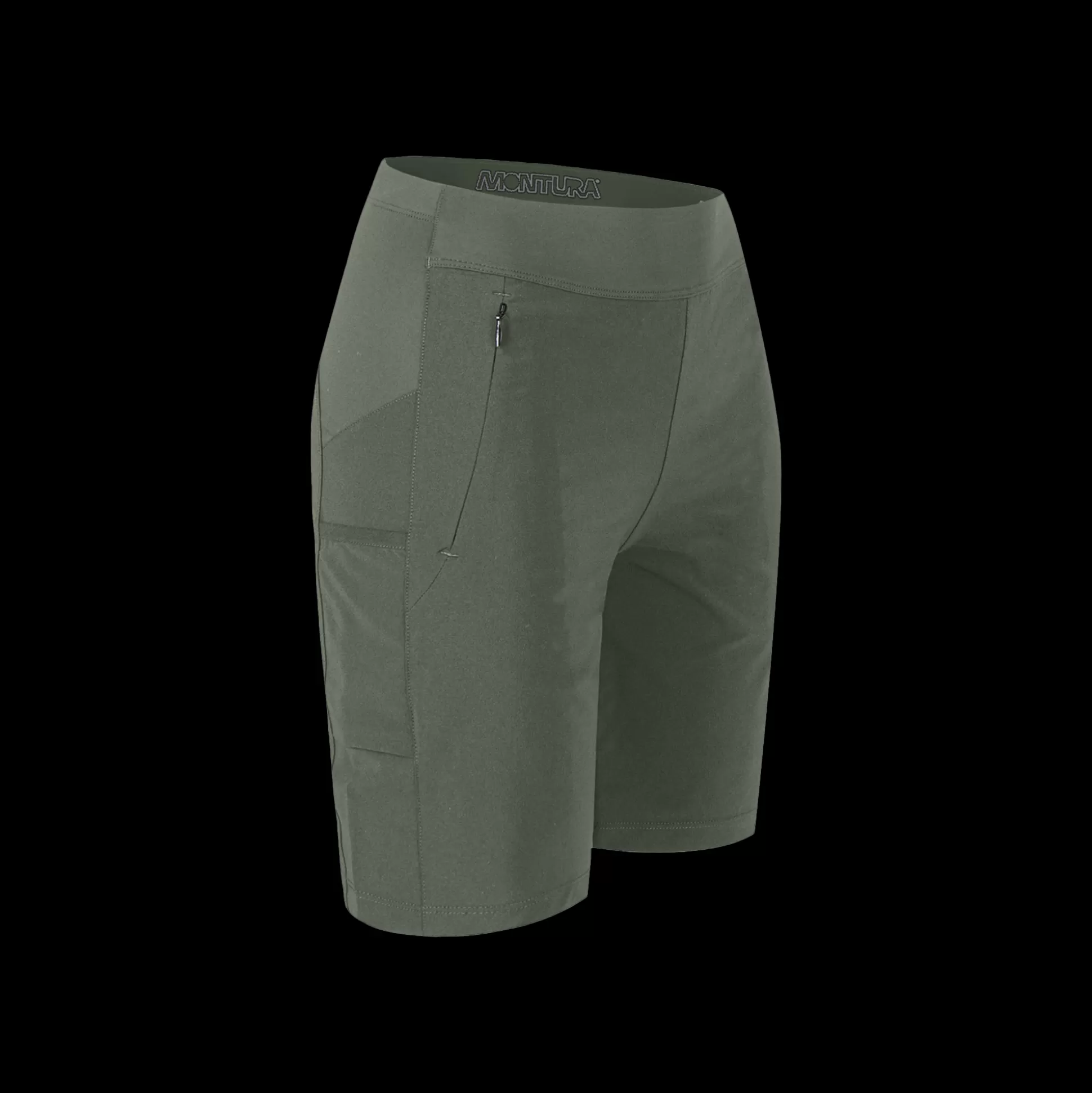 Pantalone bermuda donna Tessuto nylon DWR 4 way-stretch Vita chiusa con elastico Tasche mani con zip, tasca fianco aper…