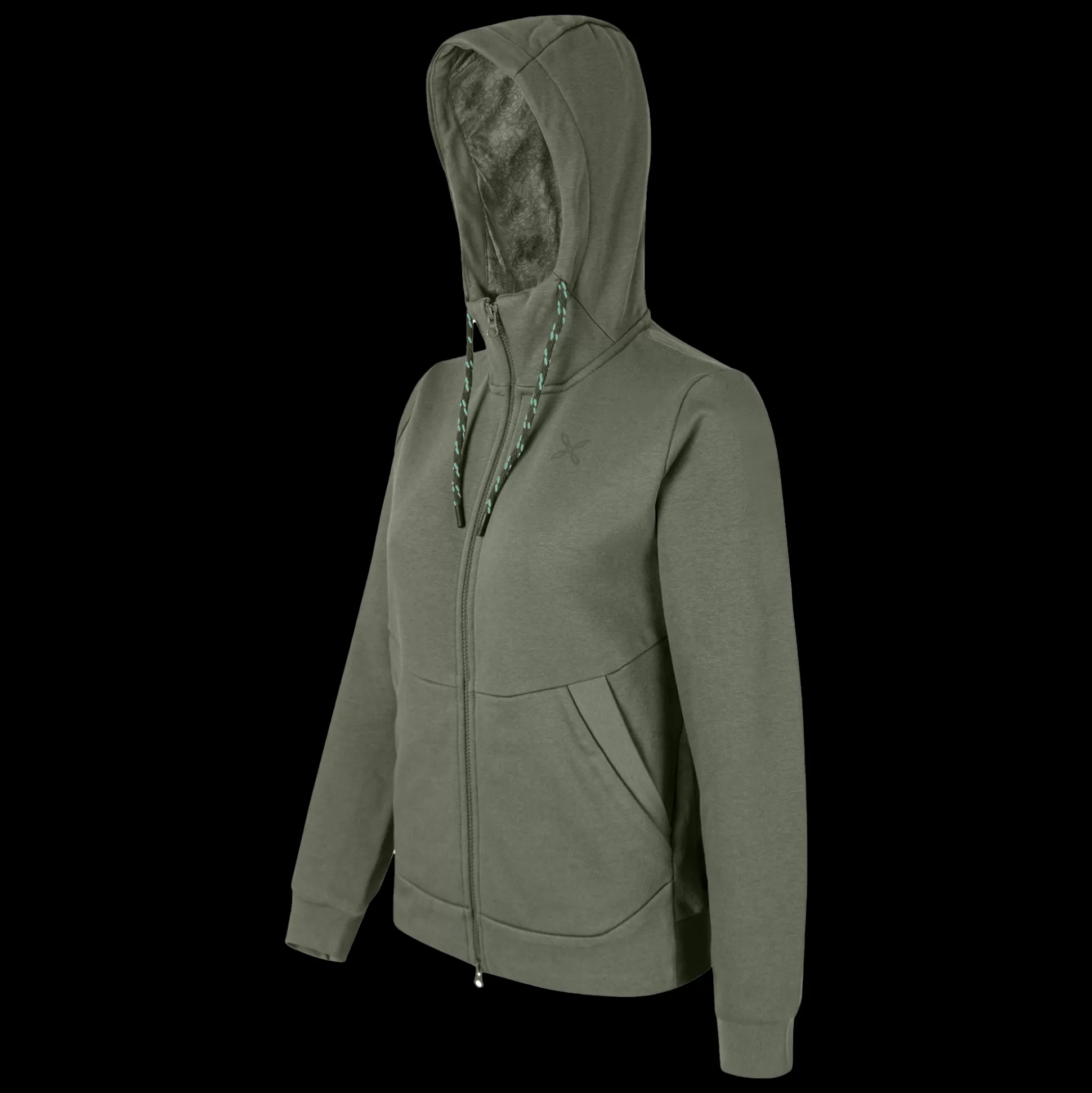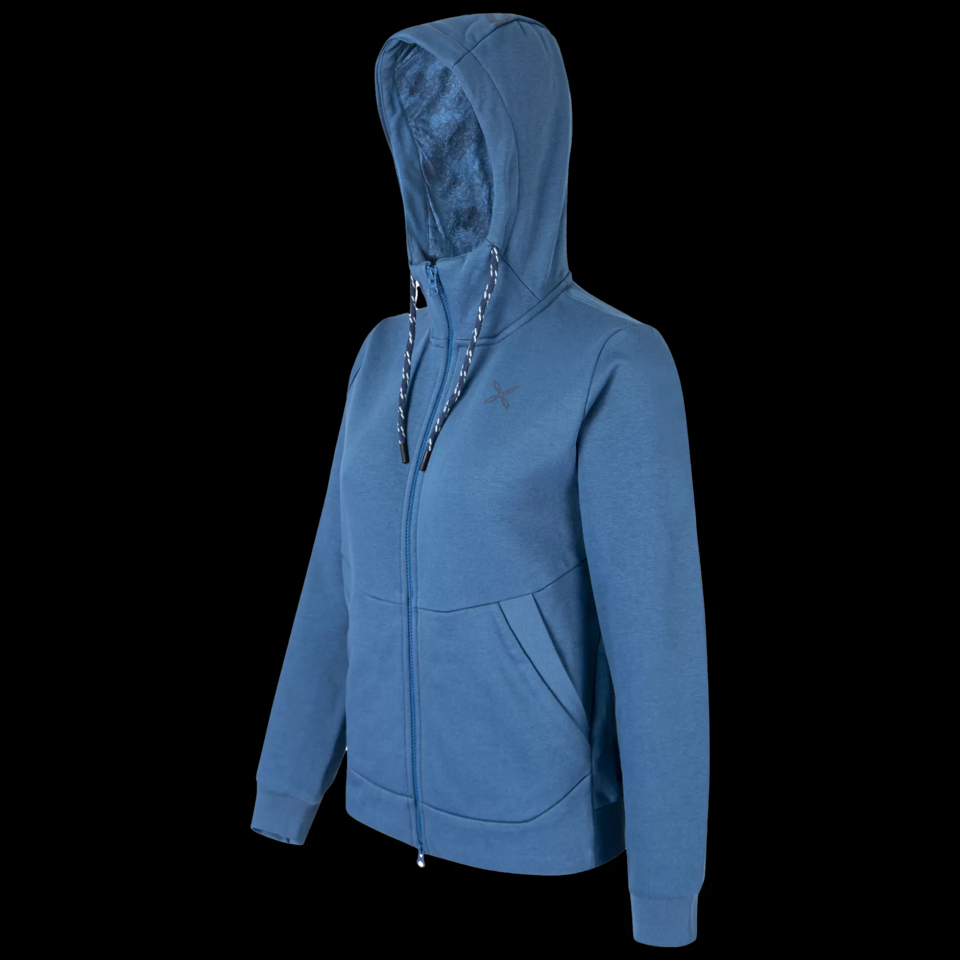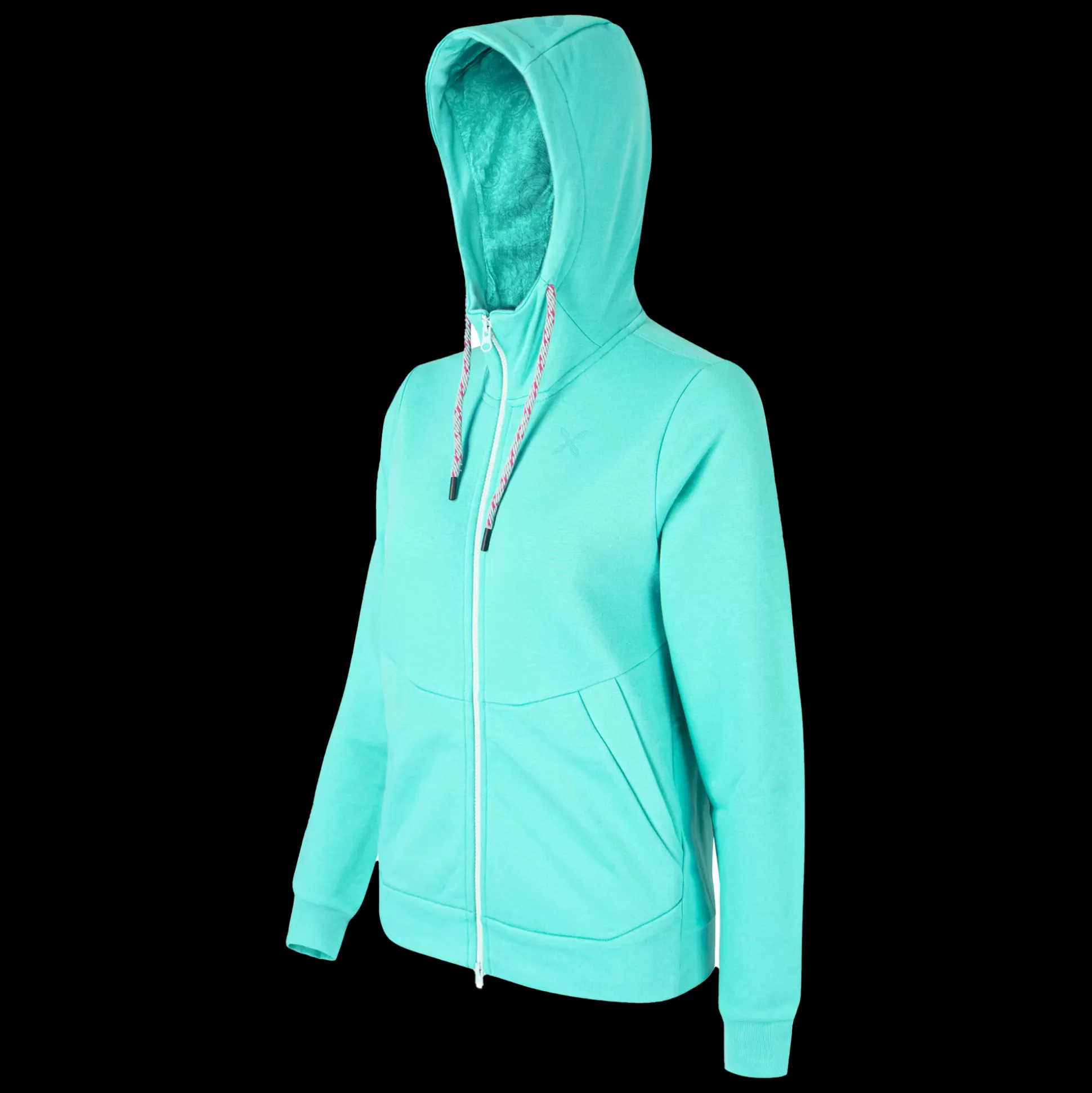 Maglia donna con cappuccio Tessuto felpa in cotone Polsi e fondo busto in tessuto a costine Zip frontale completamente …