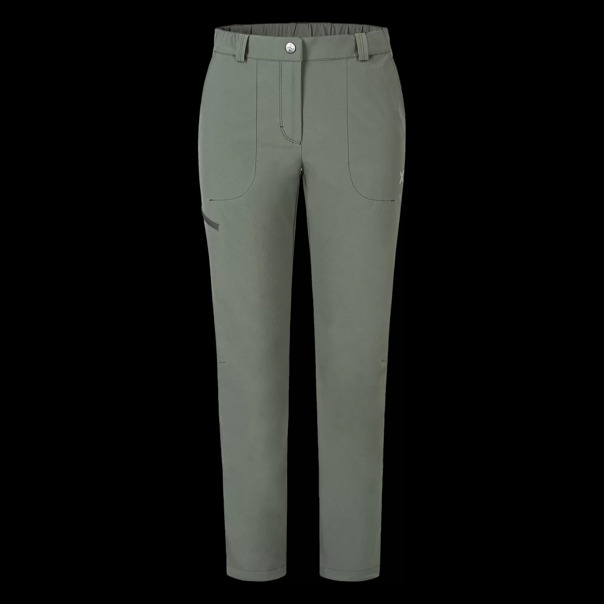 Pantalone lungo donna Tessuto nylon stretch DWR Vita con elastico e passanti, apertura con bottone e zip Tasche mani ap…